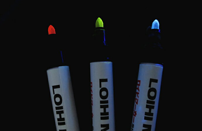 その他商品説明特徴・ブラックライト、UV-LED(375nm)に反応・ロイヒマーカーは通常可視光線下では透明で見えず、紫外線ランプ(ブラックライト)を照射する事で発光するアルコール溶解タイプの製品です。
